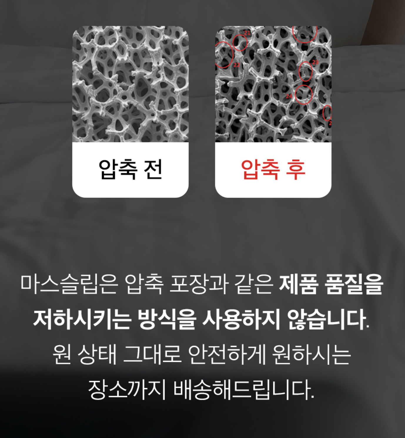 마스슬립 매트리스는 열이 메모리폼에 갇히지 않는 오픈셀 구조의 폼이고,