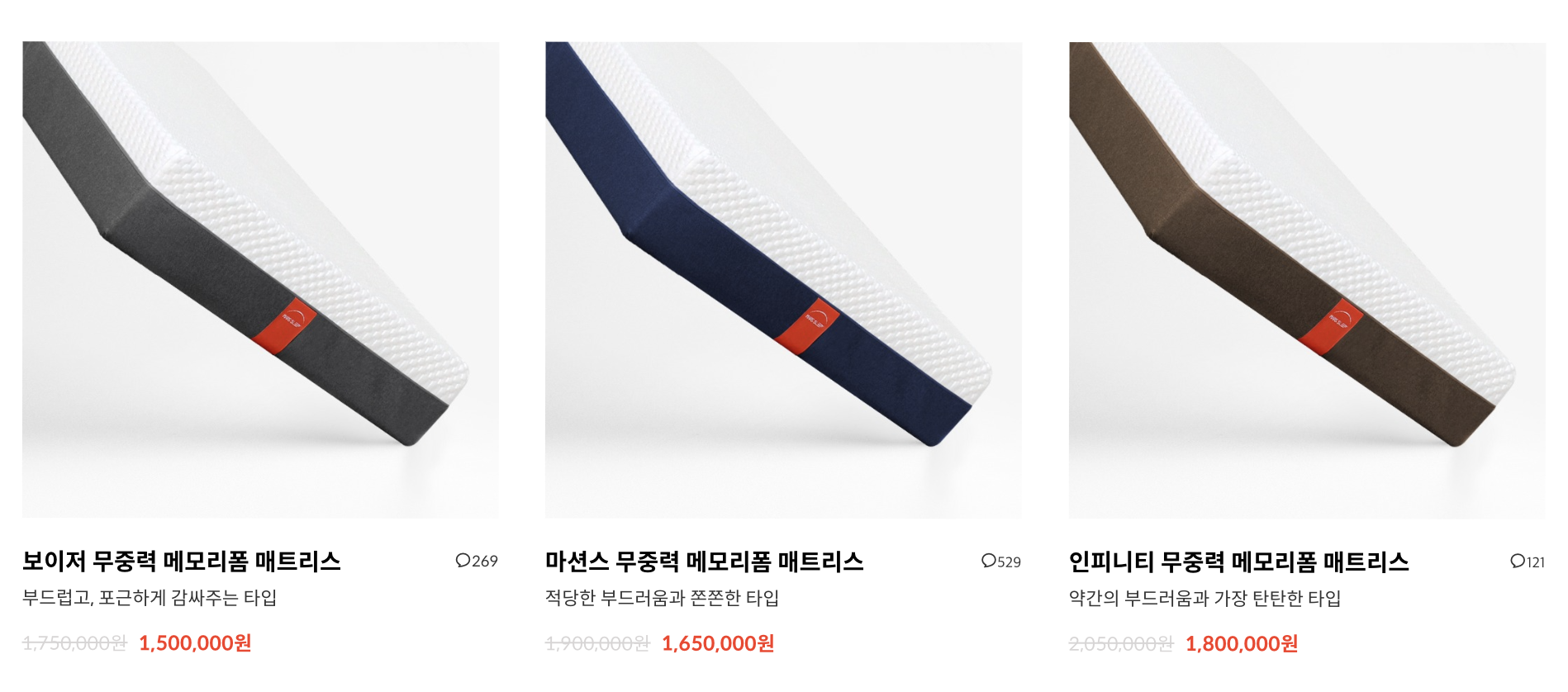 사용자가 선호하는 정도에 따른 3가지 타입으로 매트리스의 선택지를 늘렸는데요!