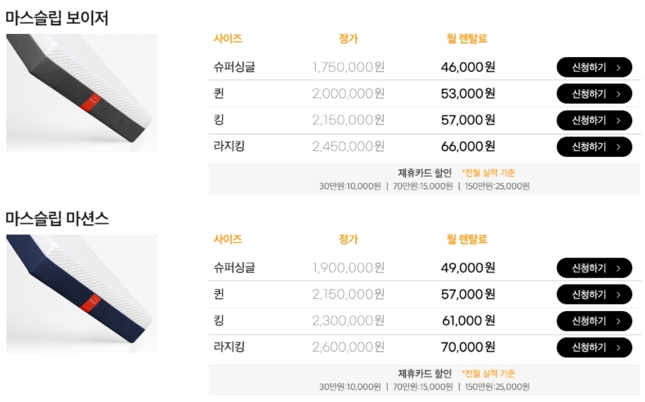 국내에서 메모리폼 매트리스로 렌탈을 하고 있는 브랜드가 바로 마스슬립인데요!