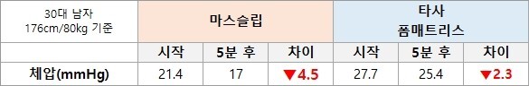 5분뒤 체압이 4.5가 더 낮아진 결과를 알 수 있었어요!